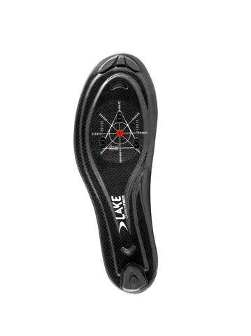 Outsole - Lake Competition 100% Carbon Fibre Sole. Available in a 3-hole cleat pattern.