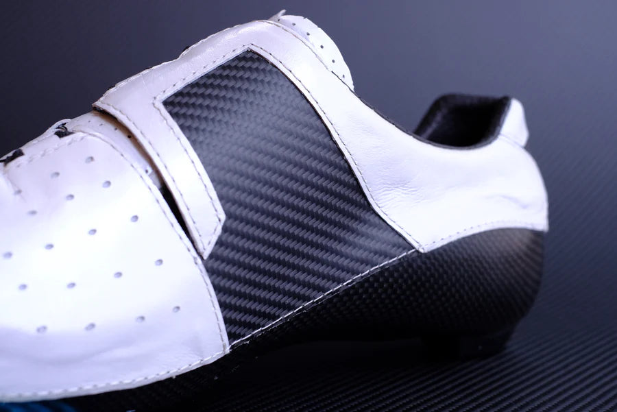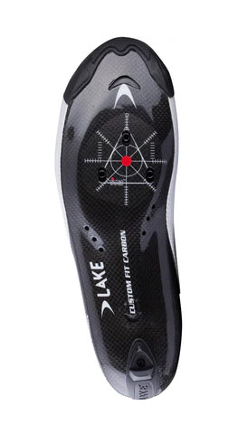 Outsole - Custom Fit Carbon Fibre sole with a replaceable heel strike pad. Available in a 3-hole cleat pattern.